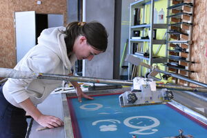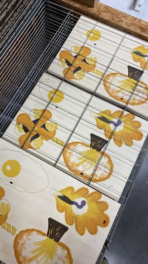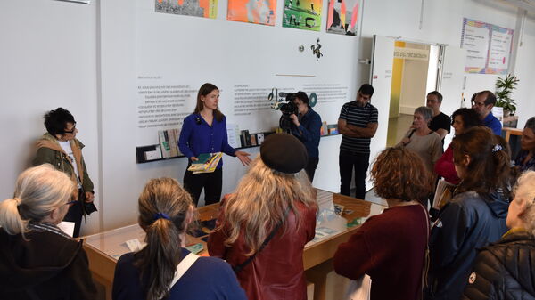 Plaçant la transmission au cœur de son travail, Gaby Bazin partage avec ses lecteurs le plaisir de l’écriture, à travers des jeux de tracé et de construction typographique. La sérigraphie et la gravure guident la composition de ses images, précises et minimalistes. Son dessin en couches de couleurs vives fait dialoguer trames, aplats et textures. Ses ouvrages se nourrissent de ses échanges avec le jeune lectorat en ateliers. Avec cette exposition, Gaby Bazin s’ouvre à une nouvelle forme de partage avec petits et grands.
