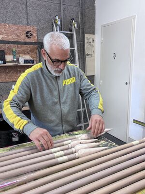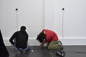 Geörgette Power a effectué plusieurs résidences de production au Bel Ordinaire. Des temps d'échange précieux avec l'équipe et les artistes en résidence pour concevoir La barrière de la langue. Une exposition, c'est également l'occasion de collaborations avec des intervenants techniques, des artisans et des artistes du territoire. Voici en images quelques étapes de création de La Barrière de la langue.
