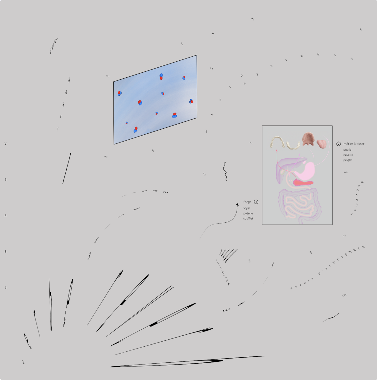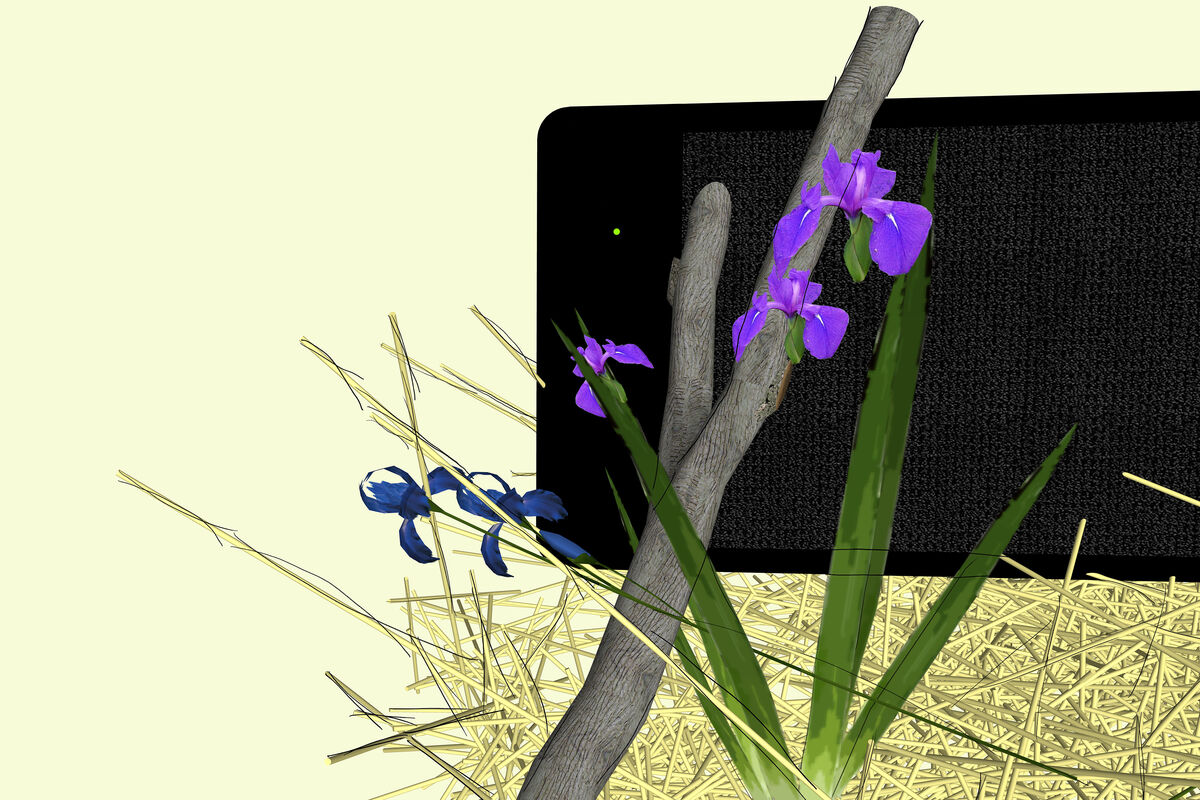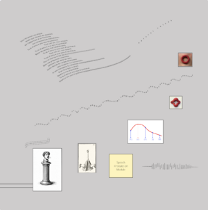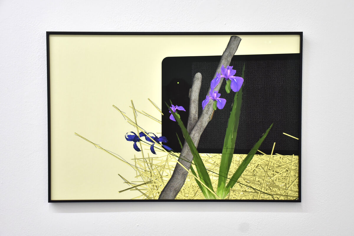 — Histoire naturelle des voix de synthèse, 2026, dessins numériques, collages, cadre alu, dimension : 70 x 70 cm par élément, triptyque © BO