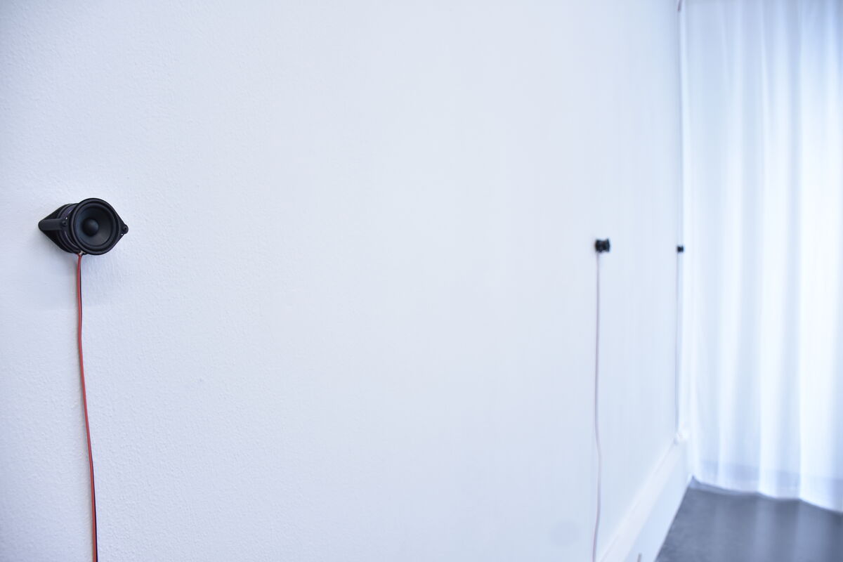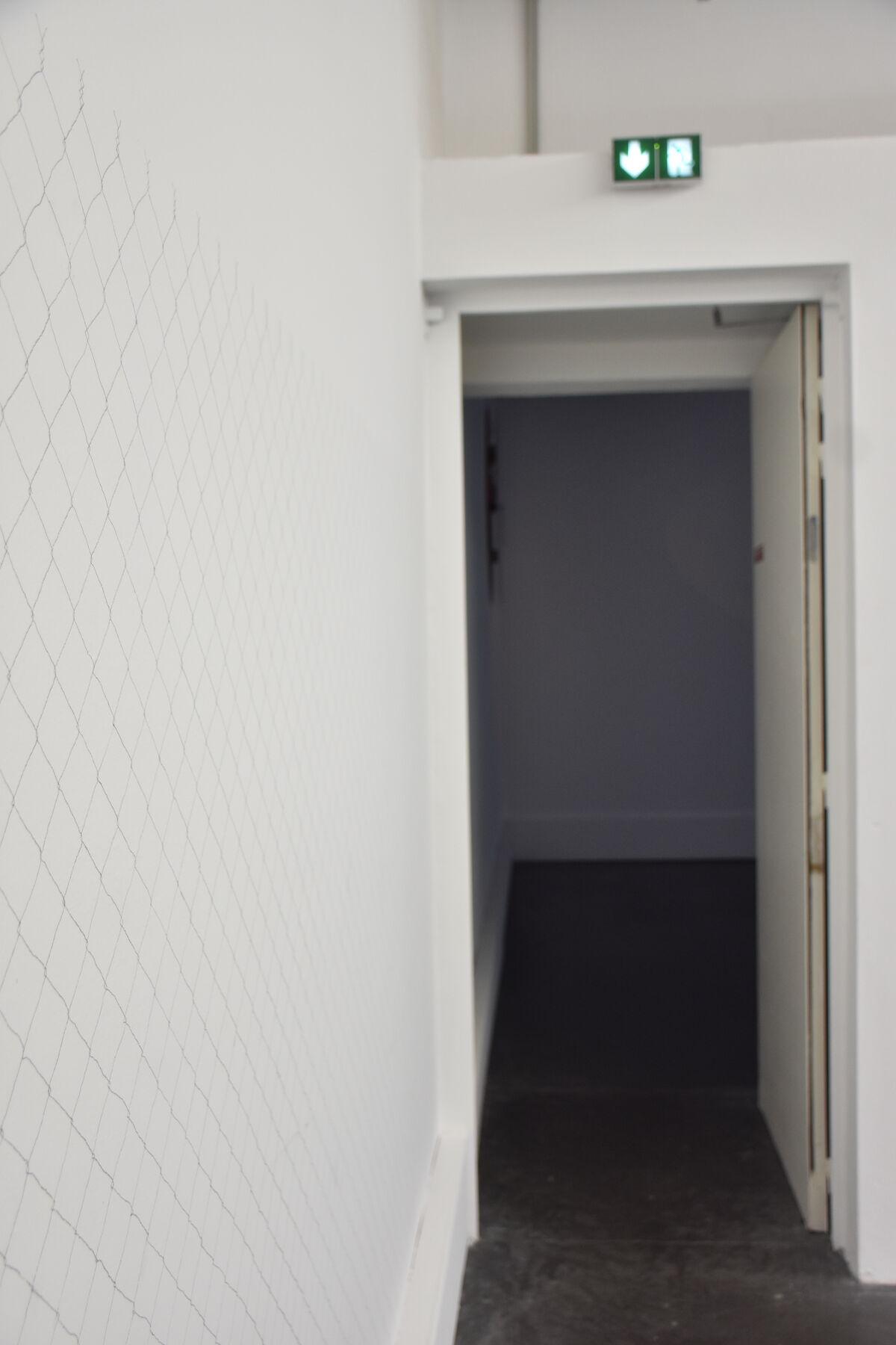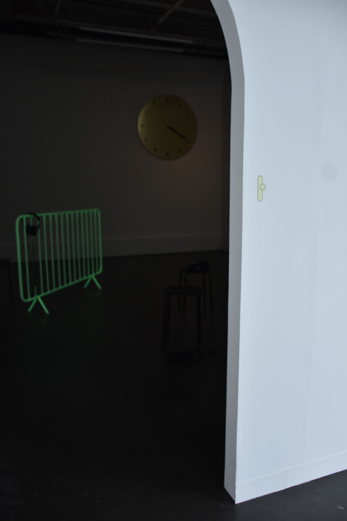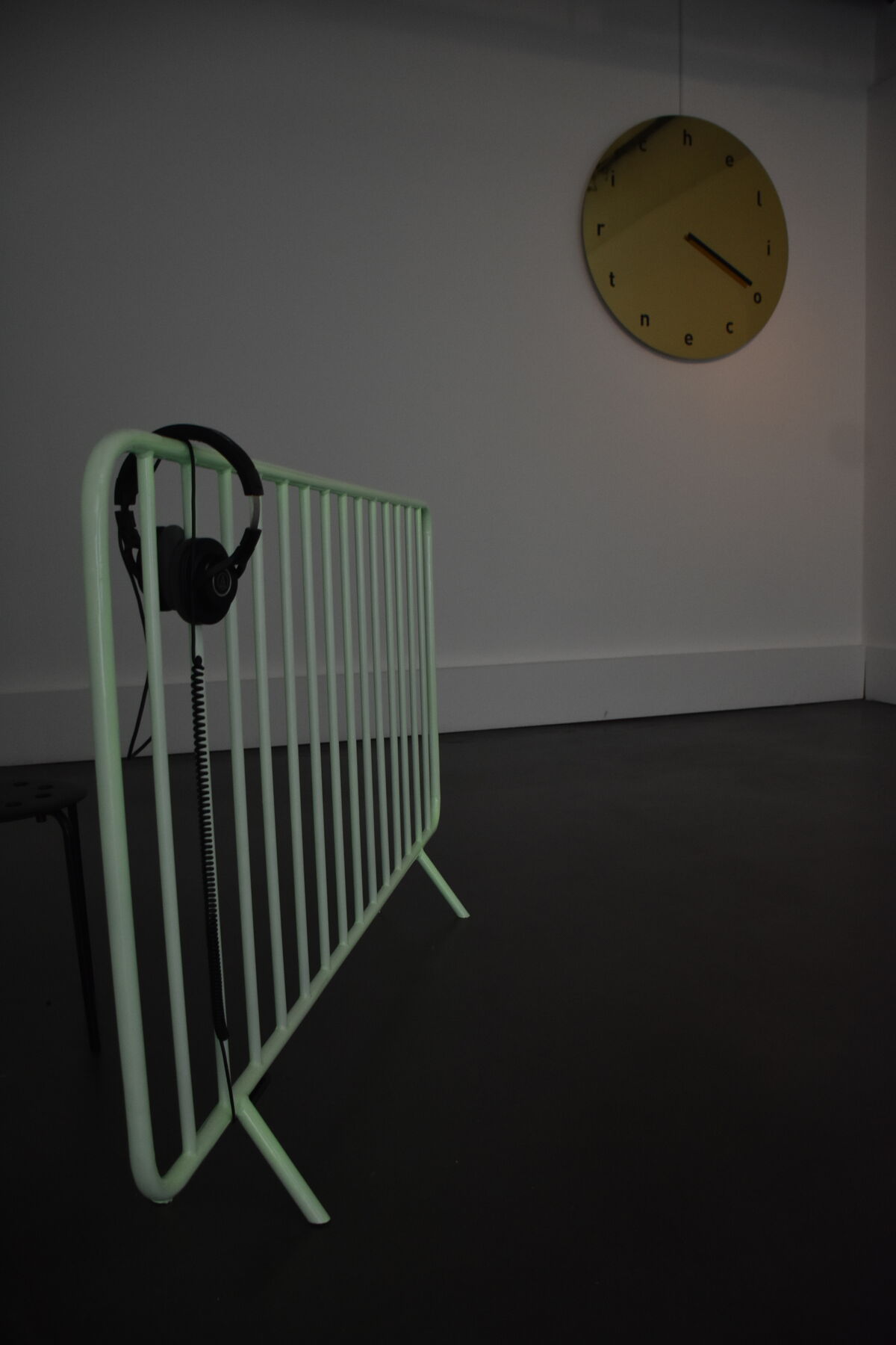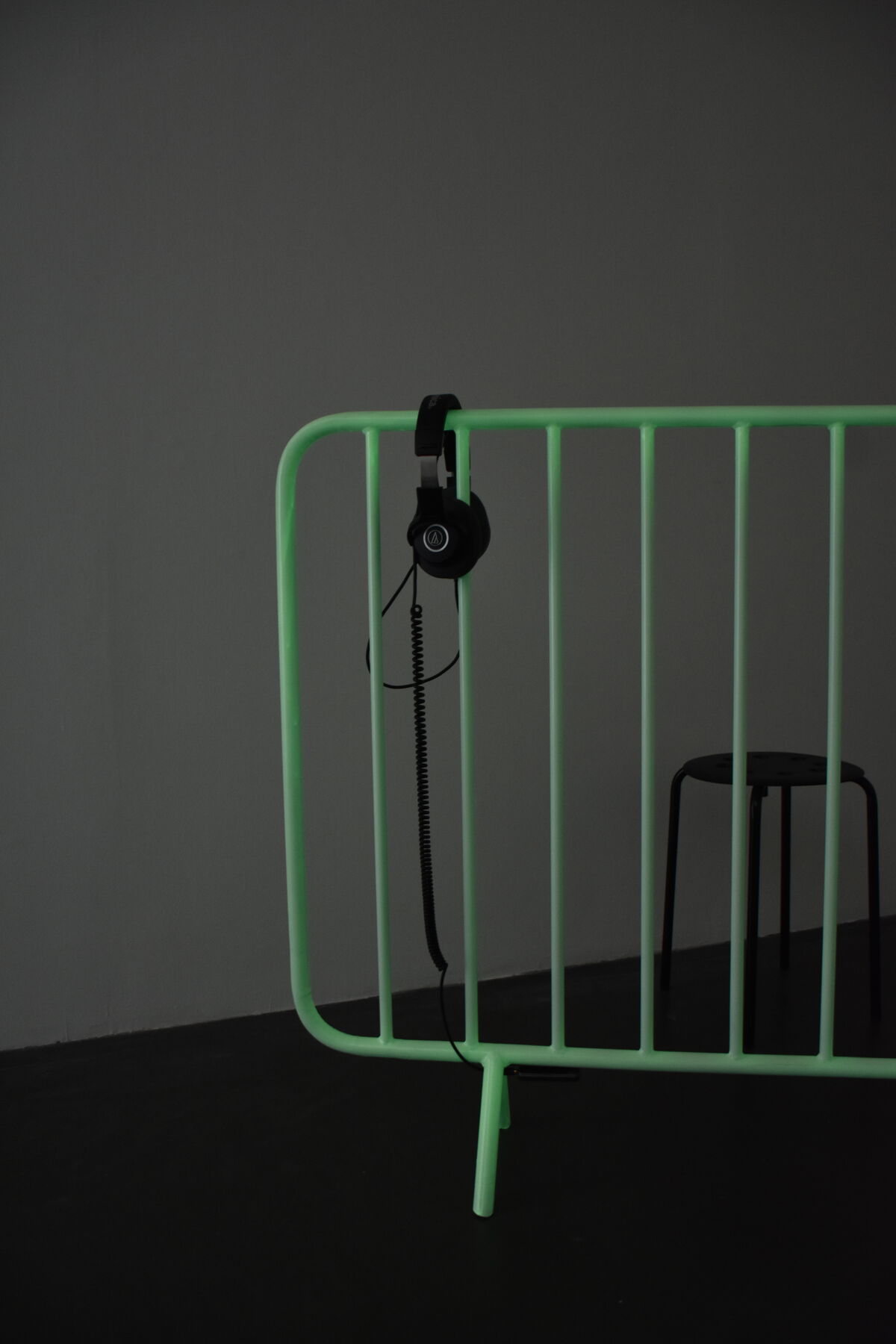 — Nix, 2026, installation sonore, barrière en inox et peinture phosphorescente, piste sonore stéréo, durée évolutive © BO
