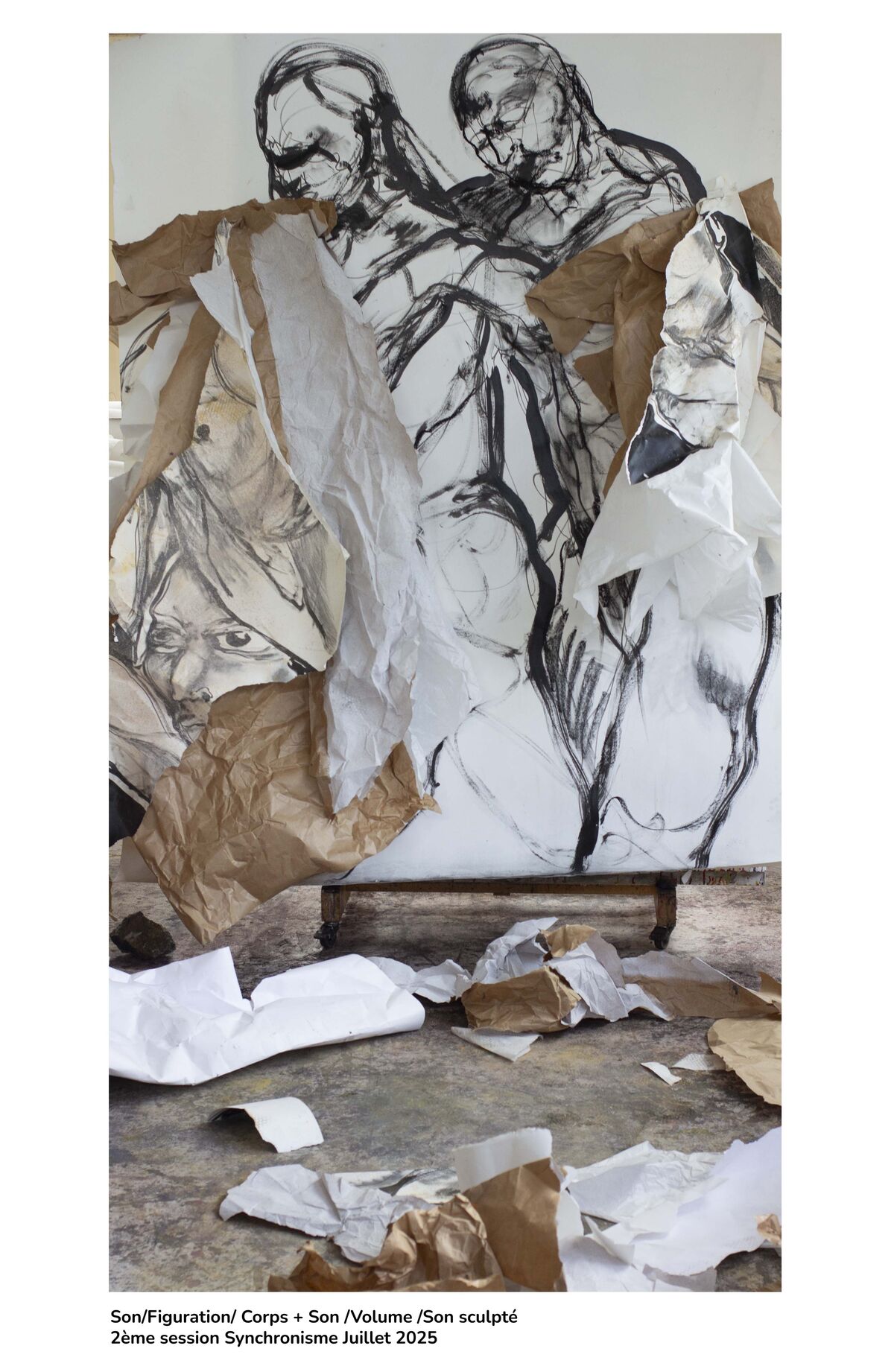 En synchronisation permanente, les deux artistes développent des pièces sonores, musicales et plastiques en écho l’une de l’autre. Fin juillet 2025, le duo se retrouve dans ce même atelier et préfère travailler sous la forme