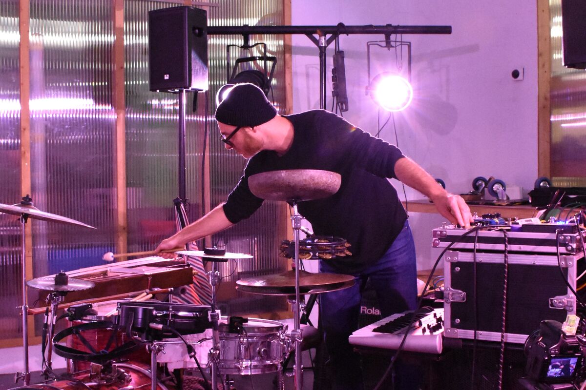 La proposition de recherche du musicien est faite sur une batterie préparée, augmentée de systèmes électro acoustiques : trois jours d’exploration à partir de mots clefs tels que corps, ombre , initiation, pouvoir …