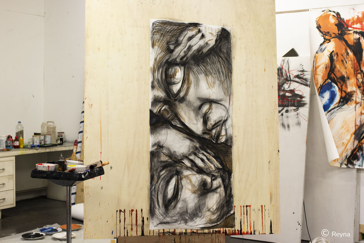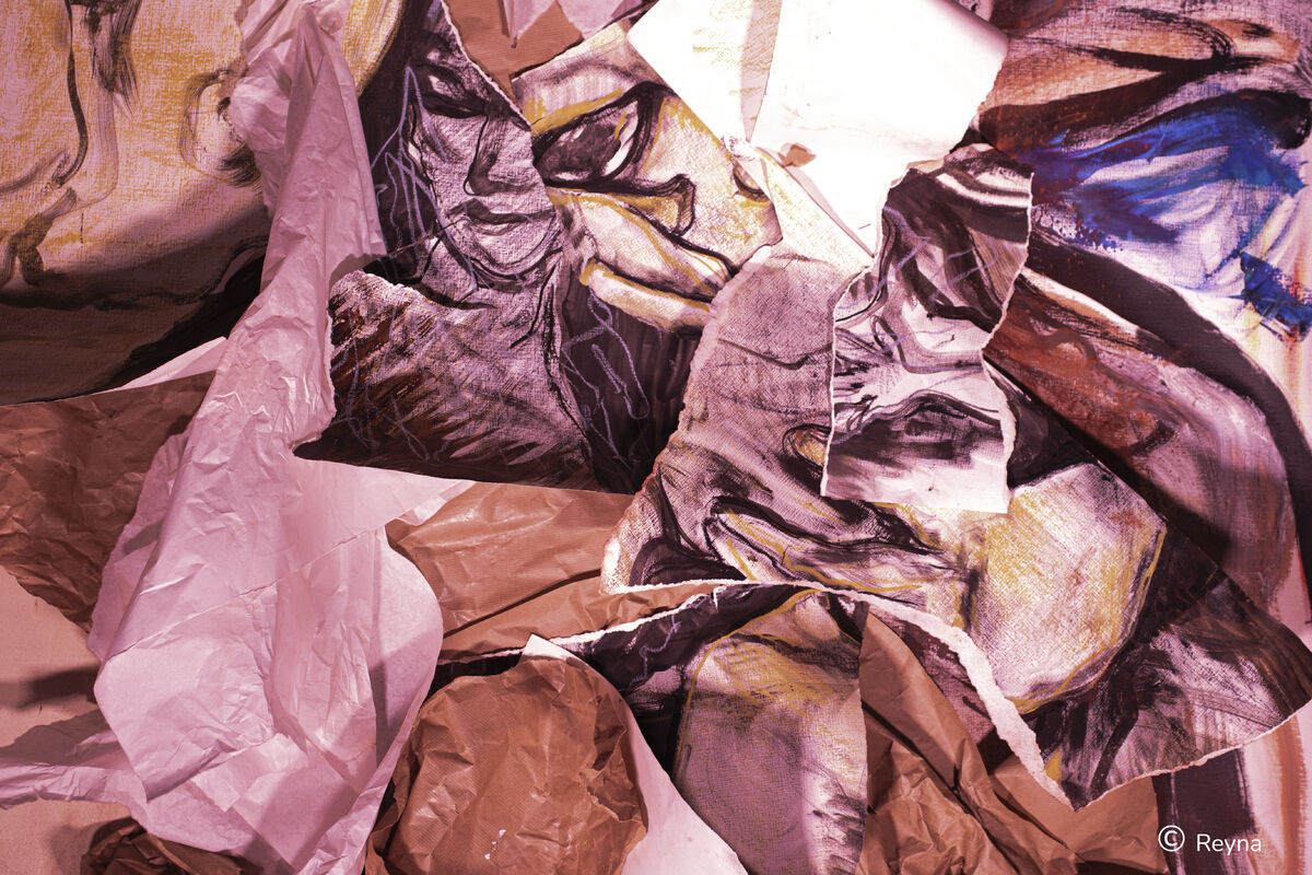 En mai 2021, Alexis Toussaint et Reyna travaillent en résidence dans l’atelier de la plasticienne sur une approche d’improvisation génératrice.