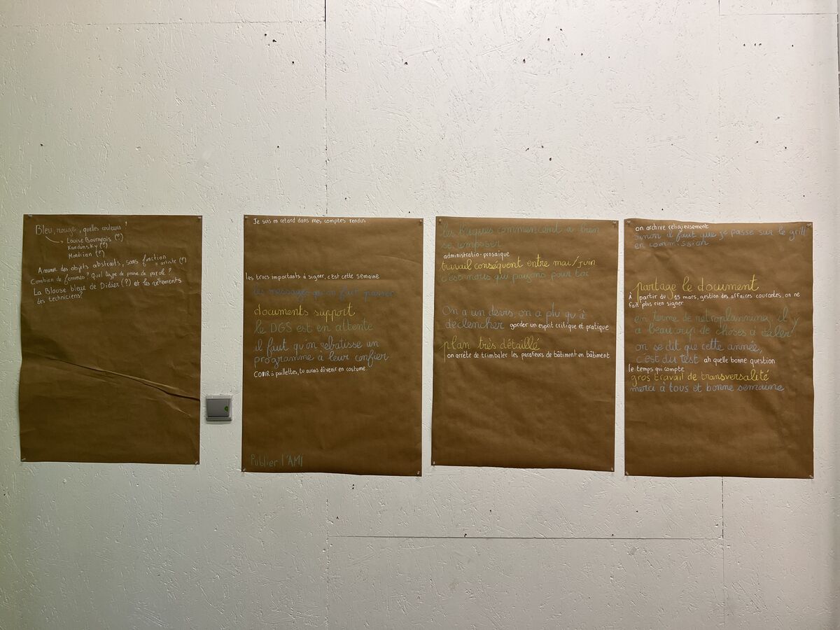 Je suis à Billère au Bel Ordinaire tout le mois de mars 2026, pour mener une recherche sur une conférence-performance pour réunion d’équipe, autour de la fonction inventée d’artiste municipale. J’ai prévu de passer la moitié de mon temps à assister à des réunions d’équipe, de service, de direction dans différents services de la Communauté d’Agglomération Pau Béarn Pyrénées, pour observer les habitus et tester des dispositifs.