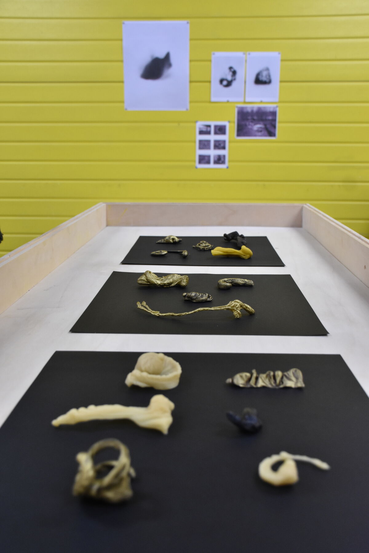 Ma résidence au Bel Ordinaire s’achève. Je me remémore ce mois passé entre l’atelier et les berges du Gave, à tenter de révéler ce que les paysages contiennent de formes, de rythmes, d’élans invisibles. Par endroits, je verse de la cire chaude dans le courant. Selon la vitesse et les turbulences de l’eau, la cire s’enroule sur elle-même, s’étire ou se plisse avant de figer sous l’effet du froid. Les formes obtenues, artefacts fragiles, fossiles, apparaissent comme des traces solidifiées d’un flux perpétuel, des archives du passage de l’eau. Chaque pièce conserve la mémoire du mouvement et des énergies rencontrées.