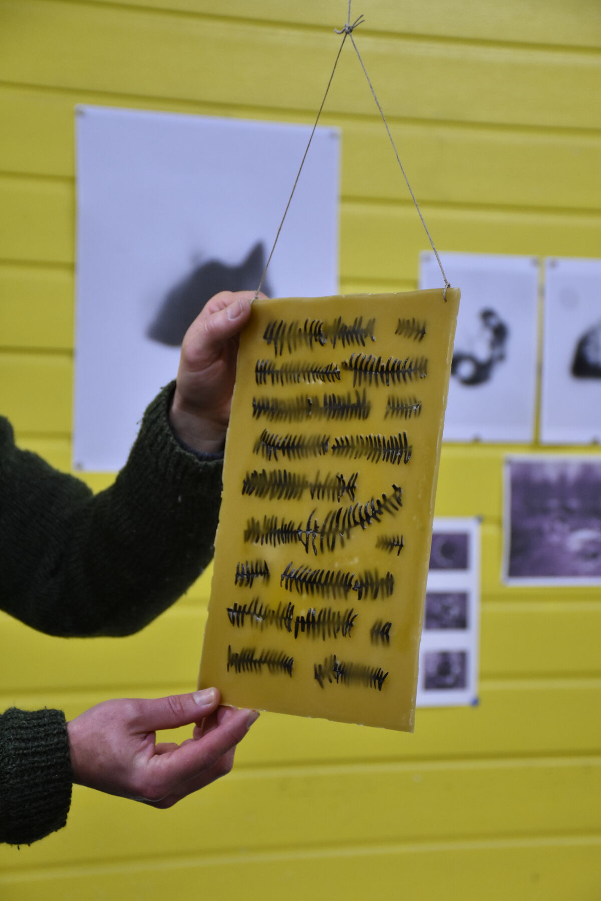 Par moments, certains objets liés à ma grand-mère s’immiscent dans mes recherches. Je la revois par exemple remplir ses grilles de mots croisés, avec une facilité déconcertante. Elle connaissait les noms des choses, des fleurs, des arbres, des oiseaux. Elle savait prédire l’arrivée de la pluie en observant le ciel ou estimer la santé d’une rivière en retournant les pierres. Hélas, la maladie d’Alzheimer a peu à peu emporté ces savoirs. Désormais, tout se mélange. Au dos des pierres, les micro-organismes laissent place à quelques mots étranges. Des lignes glanées dans les pages de magazines de mots croisés, choisies pour ce qu’elles m’évoquent ma grand-mère, sa maladie, mon enfance, ou simplement pour leur beauté. De même pour le pyrogène. Ce petit objet muni d’un grattoir en céramique pour enflammer les allumettes soufrées, était autrefois utilisé dans les bistrots et les maisons, avant l’arrivée des briquets. Ma grand-mère les collectionnait. Je les revois, une centaine, disposés dans une vitrine dans un coin de son salon. Ici, les stries caractéristiques du grattoir affleurent à la surface de branches et de galets en céramique, rassemblés en un feu de camp immaculé. Enfin, l’icône, image religieuse sur bois que ma grand-mère peignait pour elle-même dans un style traditionnel, est aussi revisitée. Les végétaux remplacent les figures saintes. Pris dans la cire, comme tombés sur la rivière, ils forment des petits poèmes du bord de l’eau, qui laissent passer la lumière.