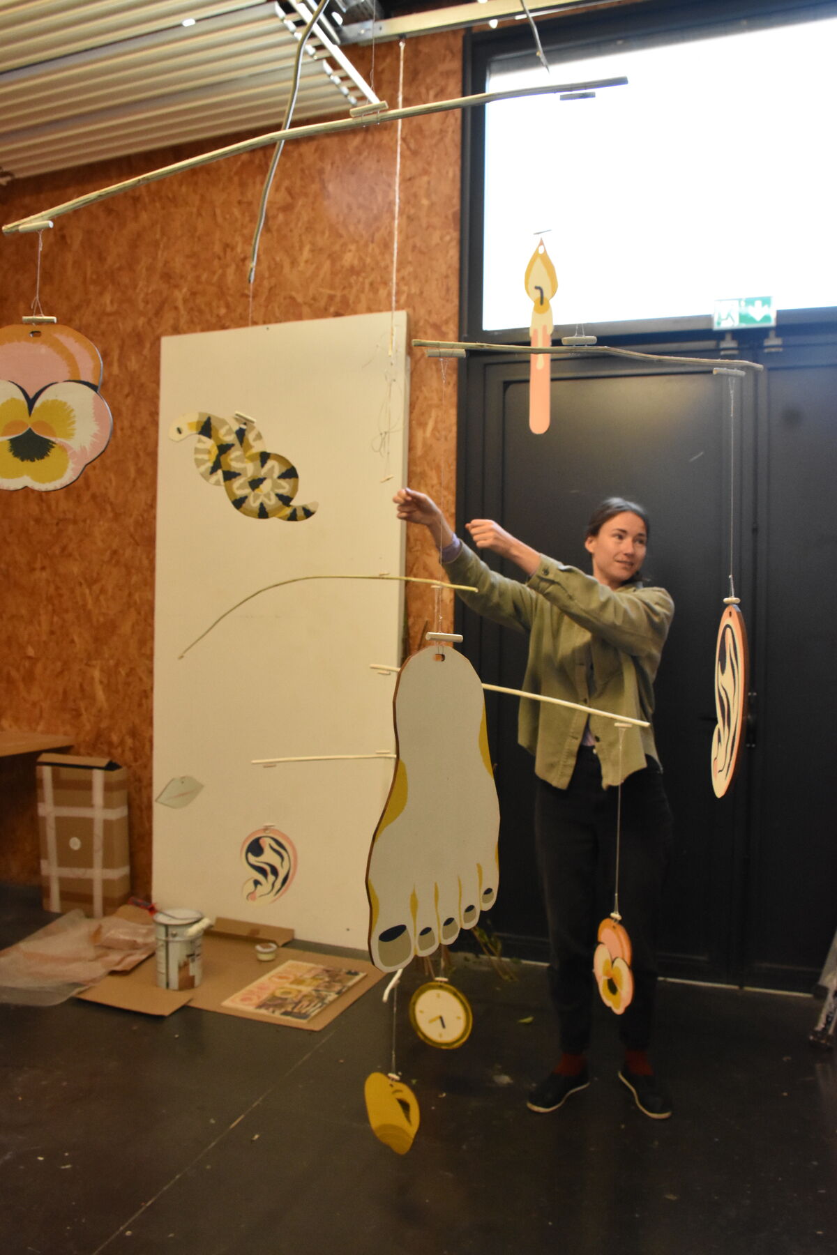 Comment provoquer des rapprochements impromptus entre des images ? Comment créer un espace favorable au repos et à l’observation ? Comment inviter le public à prendre part à ce subtil jeu de balancier et à ce grand système pictural ? Comment tirer parti du recto, du verso, des oscillations et vibrations causées par le moindre souffle d’air ? Voilà une partie des questions auxquelles j’espère répondre lors de mon séjour dans les ateliers du Bel Ordinaire.