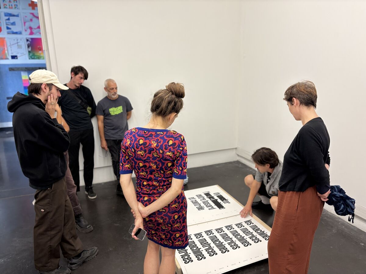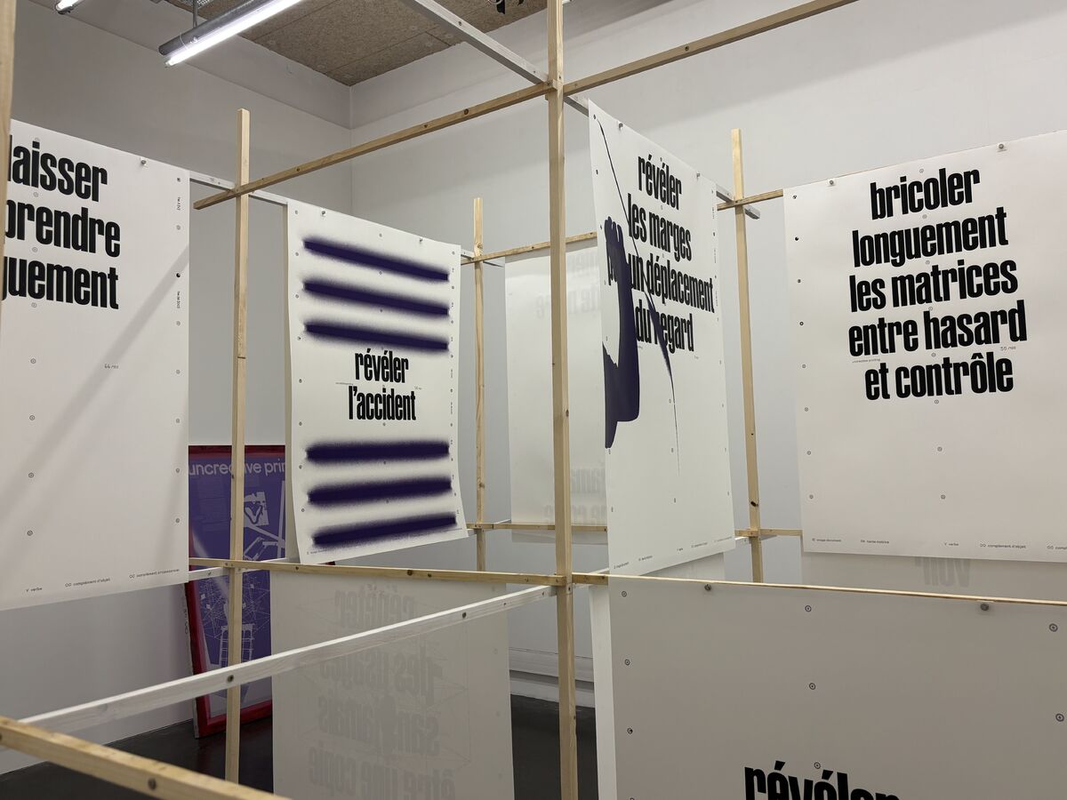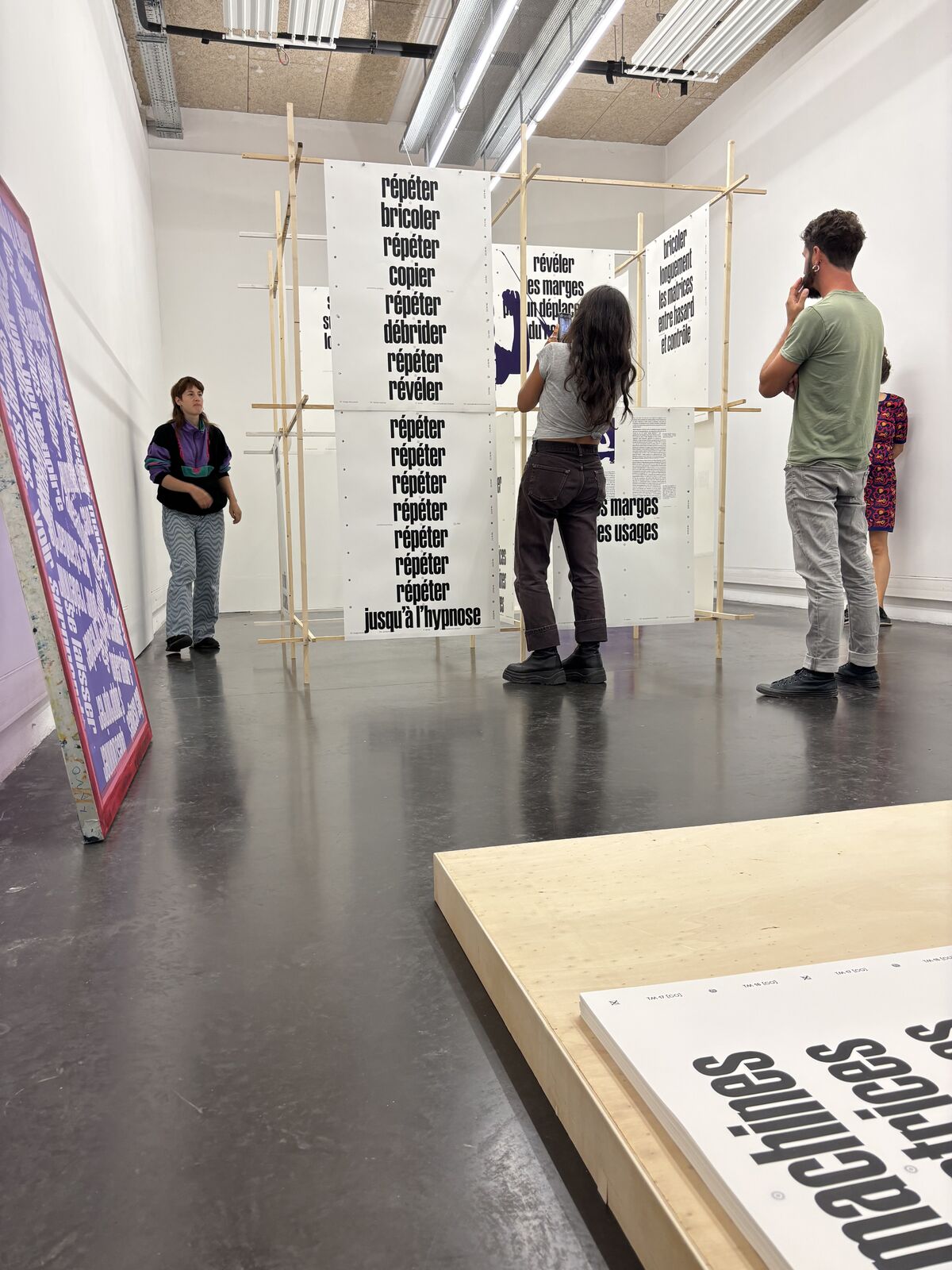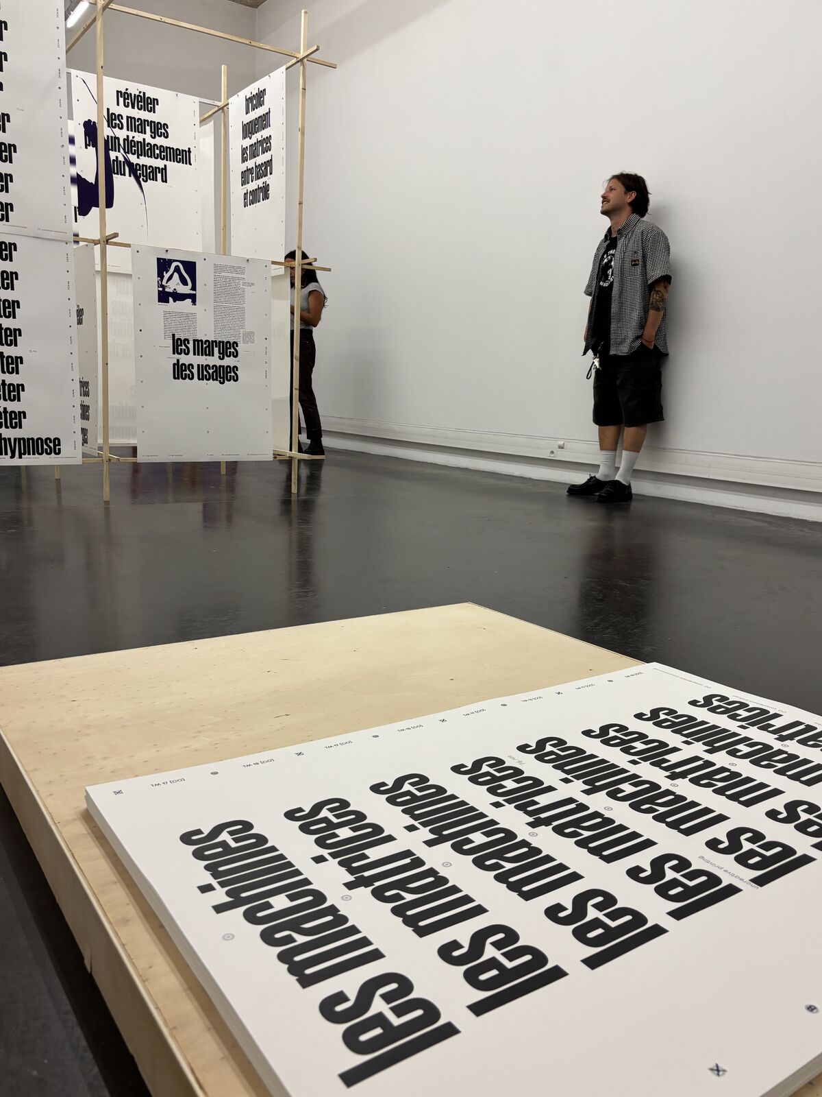 Uncreative Printing, leur résidence au Bel Ordinaire, leur permettra de procéder à l’activation imprimée de ce texte-jachère. Concrètement, leur travail consistera à éditorialiser les textes-matrices de (re)production et à les imprimer en sérigraphie sur un ensemble de 100 formats papier 70 × 100 cm. En suivant un principe combinatoire, ils chercheront à multiplier les compositions originales entre textes-matrices. Ce faisant, les différents tirages créeront autant de lectures et de relectures possibles qu’il y aura de combinaisons.
