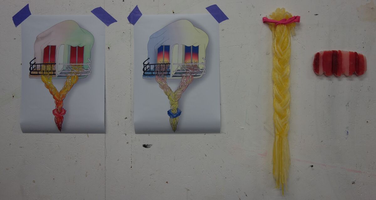 Les objets archétypaux que je détourne, amplifie ou transforme renvoient aux temps de rassemblements, aux souvenirs d’enfance et sont empreints d’une forme de joie mélancolique, d’une magnification de l’ennui et du temps qui passe.