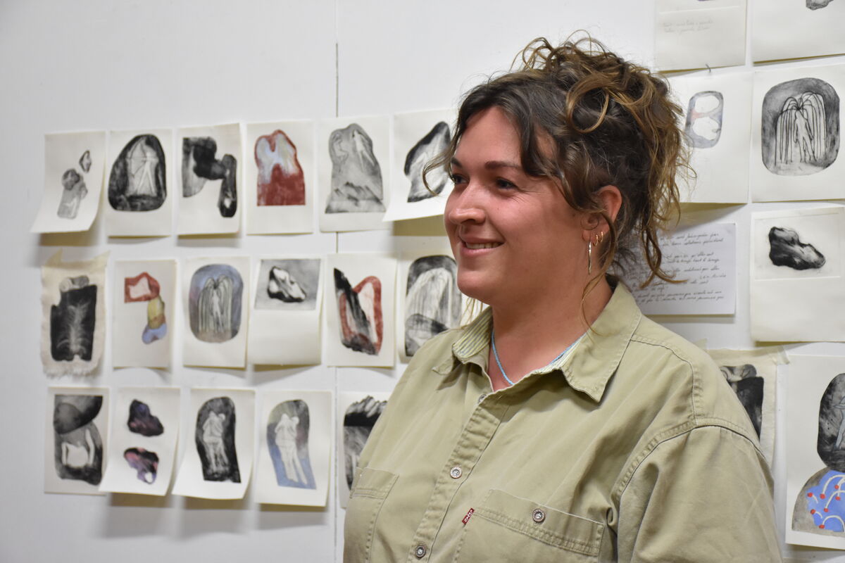Mon séjour de recherche au Bel Ordinaire m’a offert du temps, de l’espace pour expérimenter et m’a permis de sortir de mon cadre de travail habituel. Mes images ont été particulièrement nourries par les rencontres que j’ai faites et les paysages que j’ai vu ici. Assez rapidement, deux axes se sont dégagés : un travail sur des espaces abstraits en grand format au pastel sec et un travail sur une série de gravures petits formats. L’accès à une presse m’a permis de travailler la gravure en taille douce sur plexi. Dans cette série d’images, j’associe des éléments minéraux, végétaux à des éléments du corps. Ces associations me permettent de suggérer des sensations physiques et des émotions en m’appuyant sur une forme de langage minéral ou paysager. J’envisage de poursuivre cette recherche en développant un « vocabulaire » pour représenter des figures en osmose ou en tension avec leur environnement : les corps sont traversés, travaillés, transformés par les espaces dans lesquels ils gravitent. Ces gravures répondent aux grands paysages au pastel et ces deux types d’images s’alimentent, font partie d’un même univers. Je réfléchis à un accrochage qui permettrait de les mettre en lien et qui assemblerait grands formats, gravures et matrices en plexi. Je prévois aussi de poursuivre le travail entamé ici en rassemblant ces images sous la forme d’une édition reliée à la main.