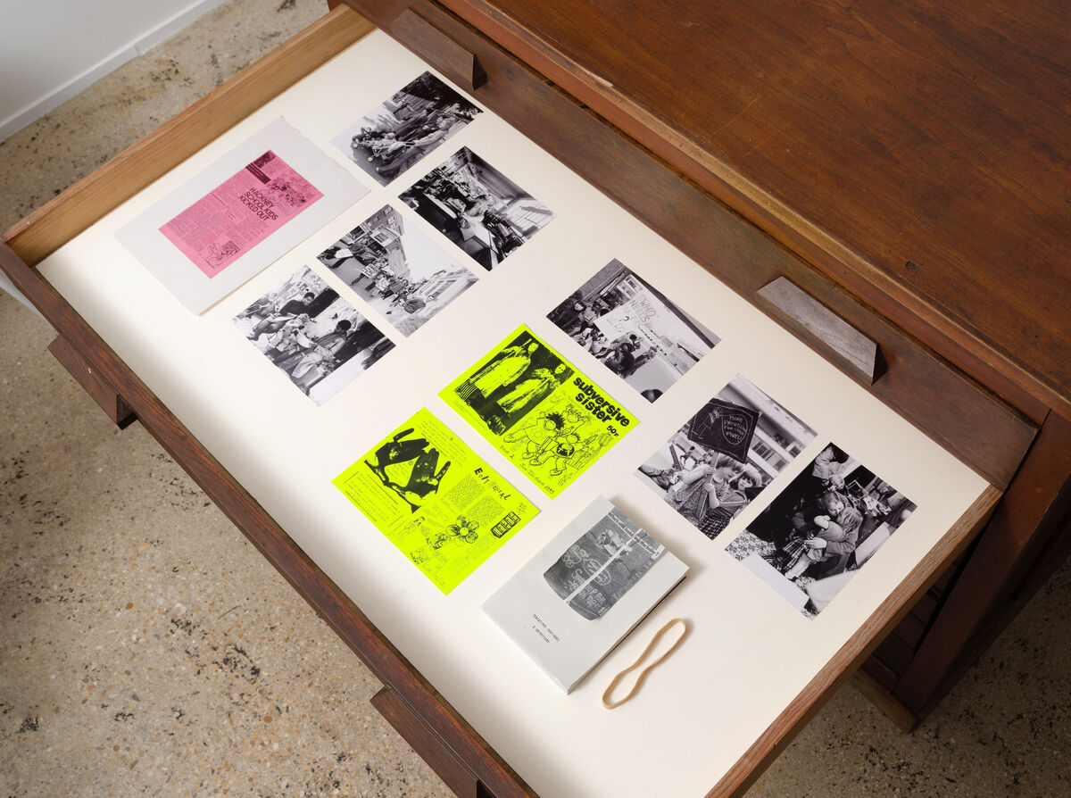 En 2023, je faisais la rencontre de la chercheuse et historienne de l’art Camille Richert. Nous nous sommes entretenues autour de ses recherches sur le collectif d’agit-prop féministe Hackney Flashers, qui a depuis fait l’objet de leur première monographie Parents must unite + fight publié chez Tombolo Press. Ce collectif a documenté les luttes féministes et les conditions de travail des femmes et mères ouvrières dans les années 1970/80 à Hackney. Le collectif diffusait ses séries photographiques non pas dans les espaces d’exposition, mais dans les lieux fréquentés par les premières concernées : usines, crèches, city hall, work desk. Nous avons continué d’échanger avec Camille sur des façons de réemployer la méthode Hackney Flashers dans le contexte sociopolitique actuel.