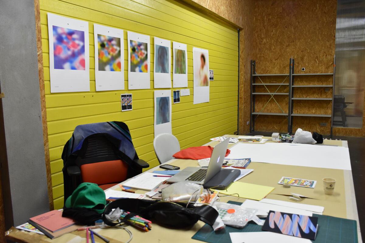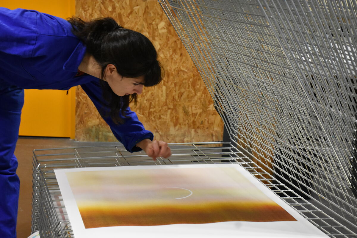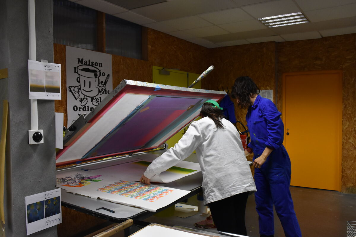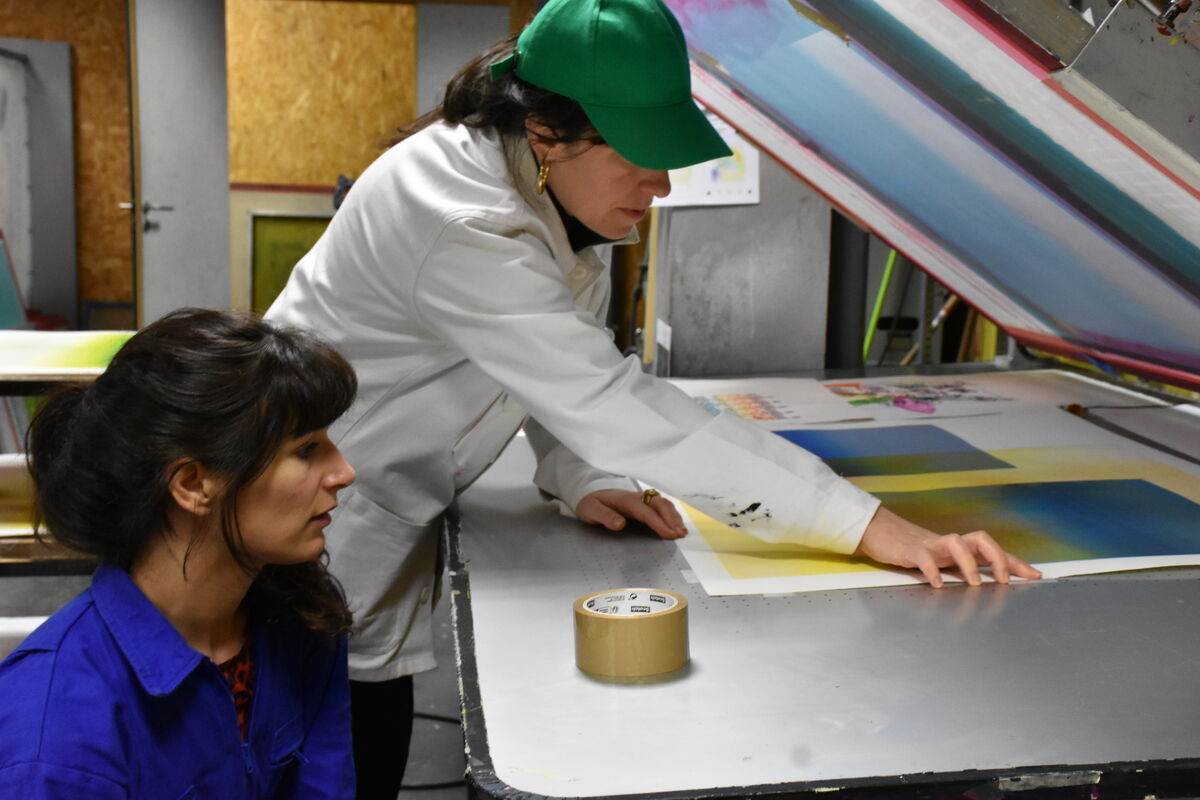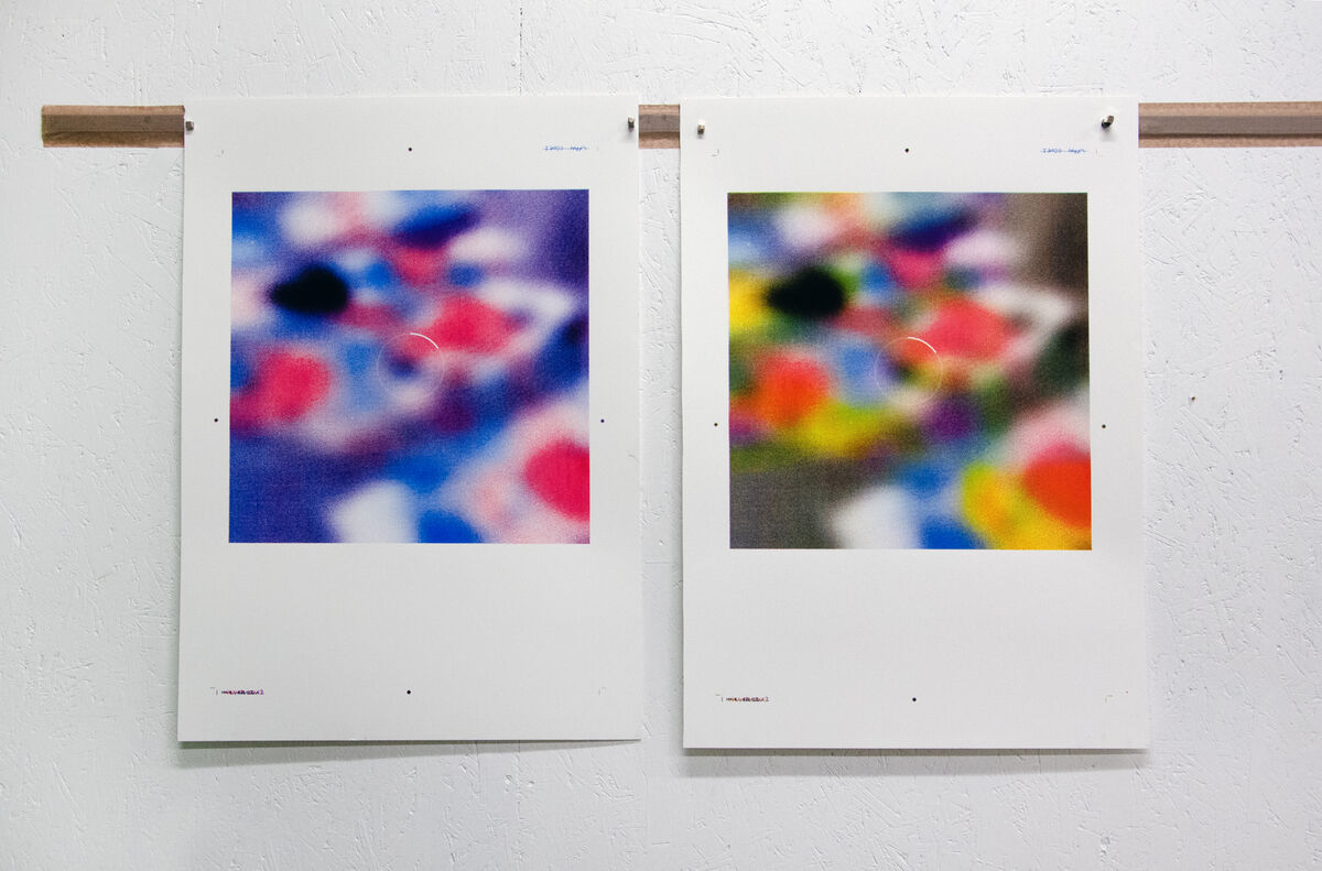 En mai 2025, j’ai initié ma recherche « Edge » au Bel Ordinaire, recherche que je poursuis durant ces deux semaines de production d’images en sérigraphie. Elle consiste en une traduction en quadrichromie d’une collection d’images numériques floues, des captures d’écrans d’images en chargement sur Instagram : des non-images d’amas abstraits de couleurs nuancées qui apparaissent un bref instant lorsque nous ne captons plus.